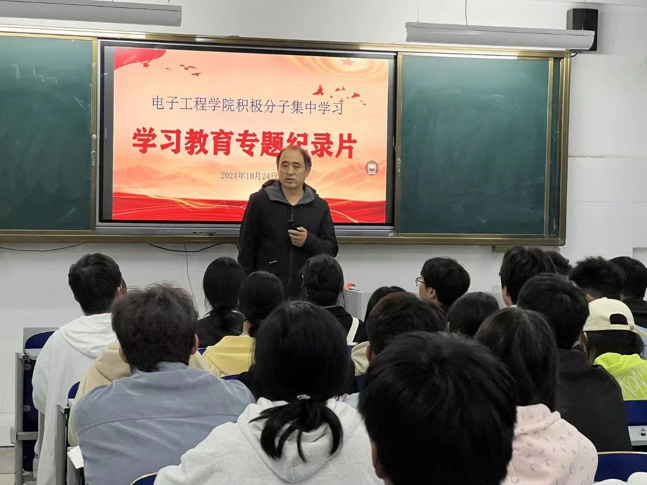 2024年10月24日,電子工程學(xué)院在5號樓106教室舉辦了一場積極分子主題教育學(xué)習(xí)培訓(xùn)活動。本次活動以觀看學(xué)習(xí)教育專題紀(jì)錄片為核心內(nèi)容,旨在提升入黨積極分子的思想認(rèn)識和政治覺悟,進(jìn)一步堅定他們的理想信念。