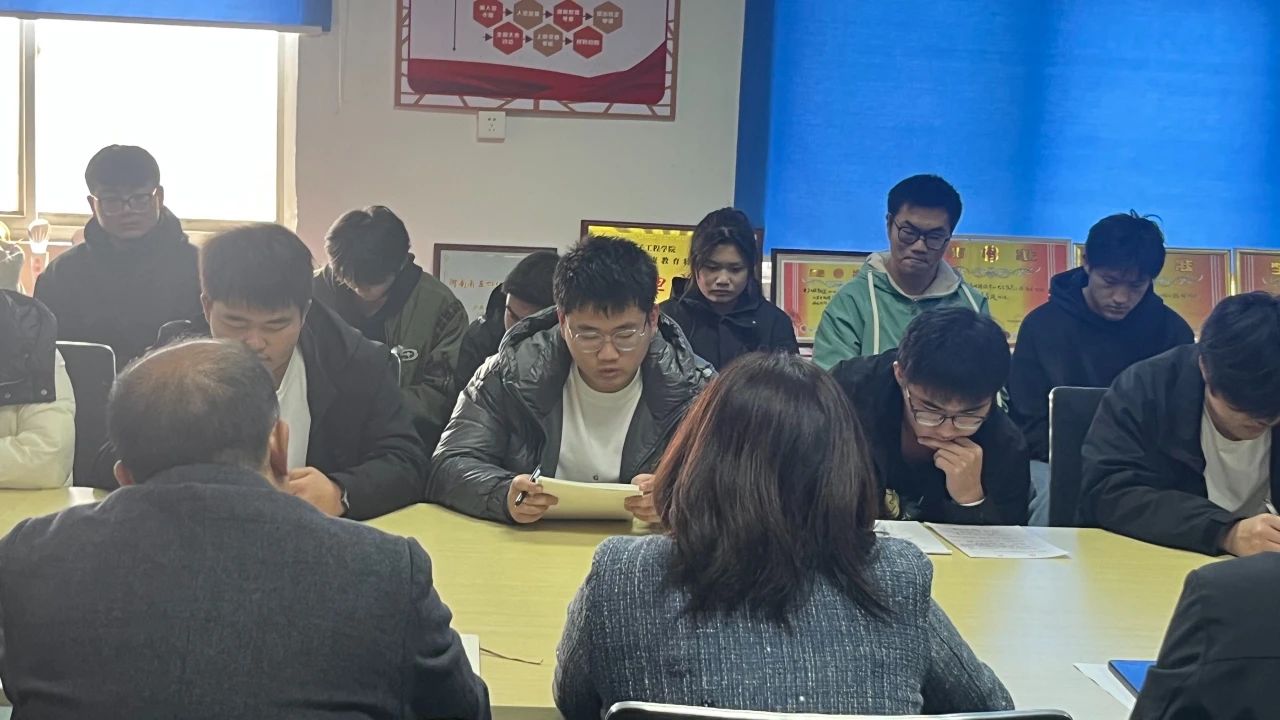 綜合辦公室主任田峰林發(fā)言,表達(dá)對學(xué)生學(xué)習(xí)生活情況的關(guān)心,簡要說明學(xué)院在提升教學(xué)質(zhì)量、改進(jìn)教學(xué)方式等方面所做的努力,并鼓勵(lì)學(xué)生積極表達(dá)意見和建議。