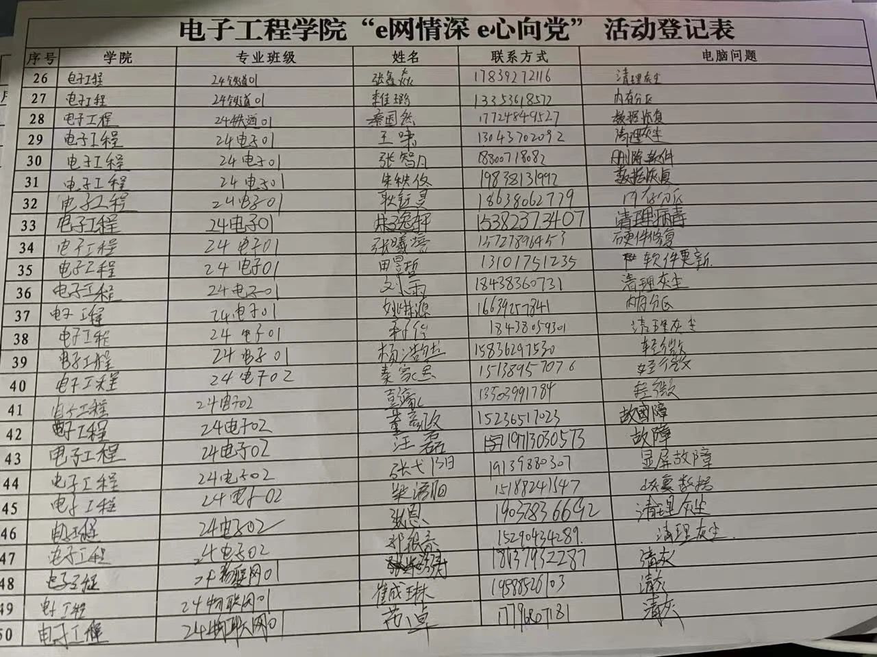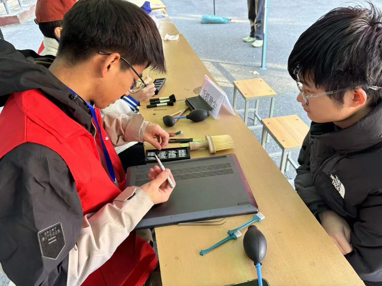 為進(jìn)一步探索“黨建+”融合發(fā)展的實(shí)踐路徑,賦能“一院一品”特色品牌建設(shè),電子工程學(xué)院以黨建引領(lǐng)專業(yè)建設(shè),于2024年11月28日如期開展一次“e網(wǎng)情深、e心向黨"義維修電腦系列活動(dòng),突顯專業(yè)特色,聚焦學(xué)生需求,幫助師生解決電腦問題。此次活動(dòng),不僅是一次技術(shù)知識(shí)的普及與推廣,更是一次創(chuàng)新探索的生動(dòng)實(shí)踐,通過實(shí)景實(shí)物、專業(yè)實(shí)操等多種形式全面展示宣傳我院特色與亮點(diǎn),強(qiáng)化學(xué)生專業(yè)能力,扎實(shí)推動(dòng)紅色教育,共筑實(shí)踐基地。