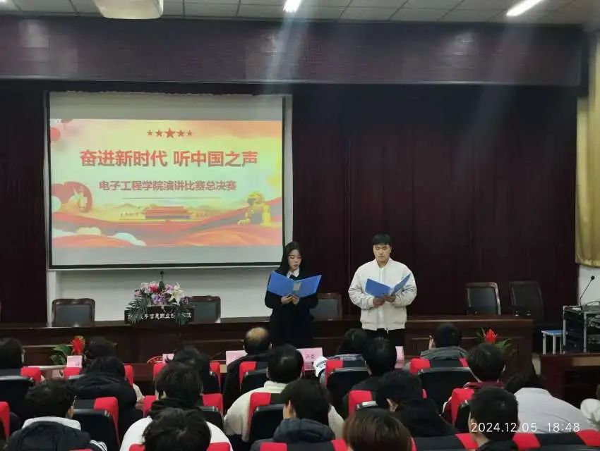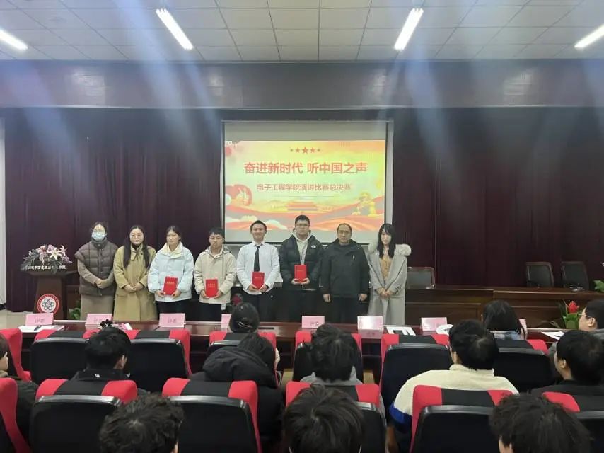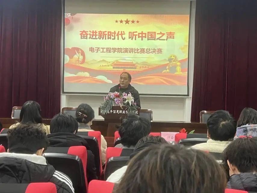 為深入學(xué)習(xí)貫徹習(xí)近平新時(shí)代中國(guó)特色社會(huì)主義思想和黨的二十大、二十屆三中全會(huì)精神,推進(jìn)高校鑄牢中華民族共同體意識(shí)工作。2024年12月5日,電子工程學(xué)院在圖書館二樓報(bào)告廳舉辦“奮進(jìn)新時(shí)代,聽中國(guó)之聲”主題演講比賽。本次演講比賽由張智賢、段躍武主持,黨總支書記王正偉,學(xué)生黨支部書記李玲玲,教研室主任陳新穎,輔導(dǎo)員代表梁哲、劉蒙蒙,老師代表李一凡、辛國(guó)偉,出席活動(dòng)。