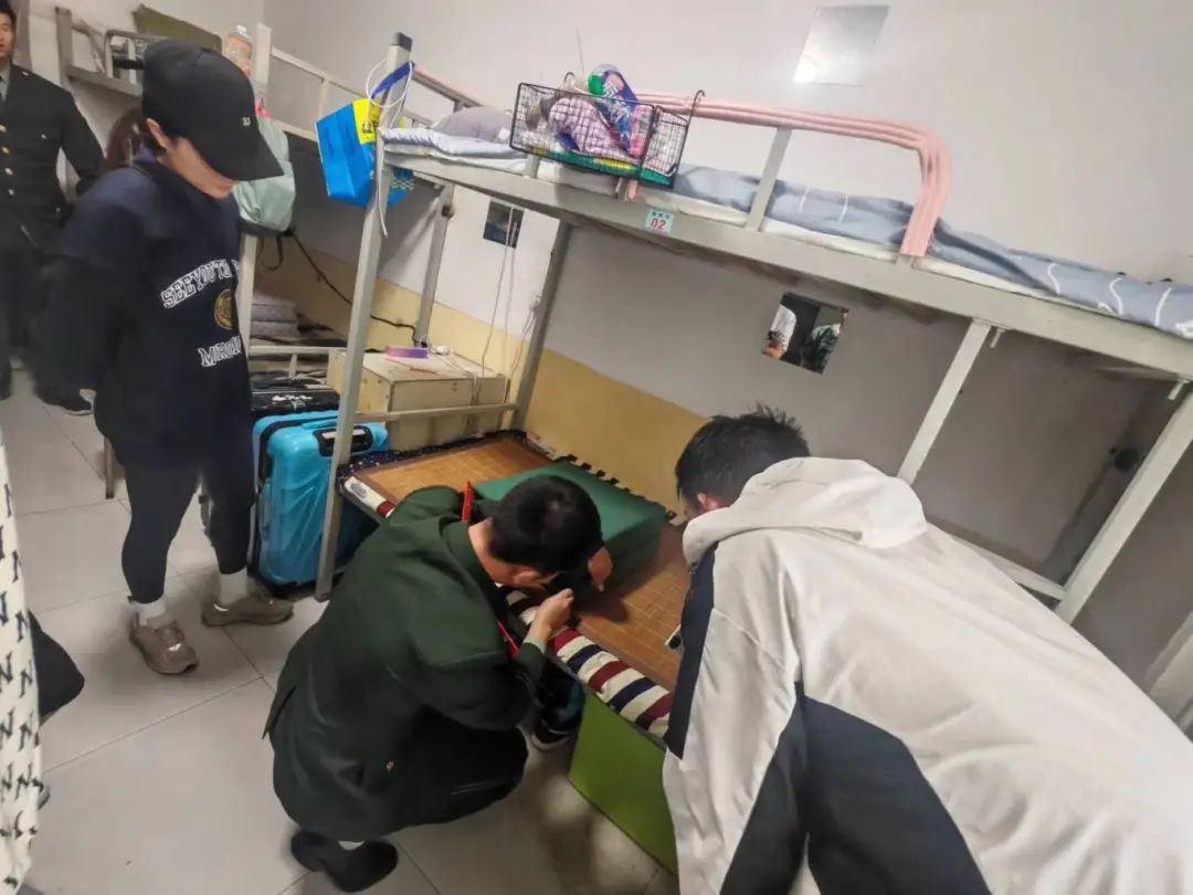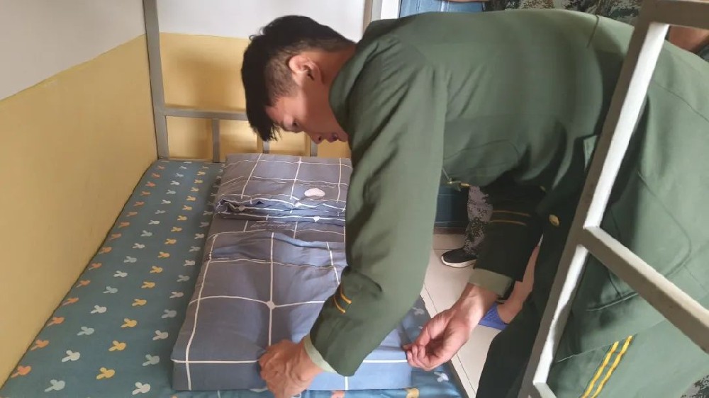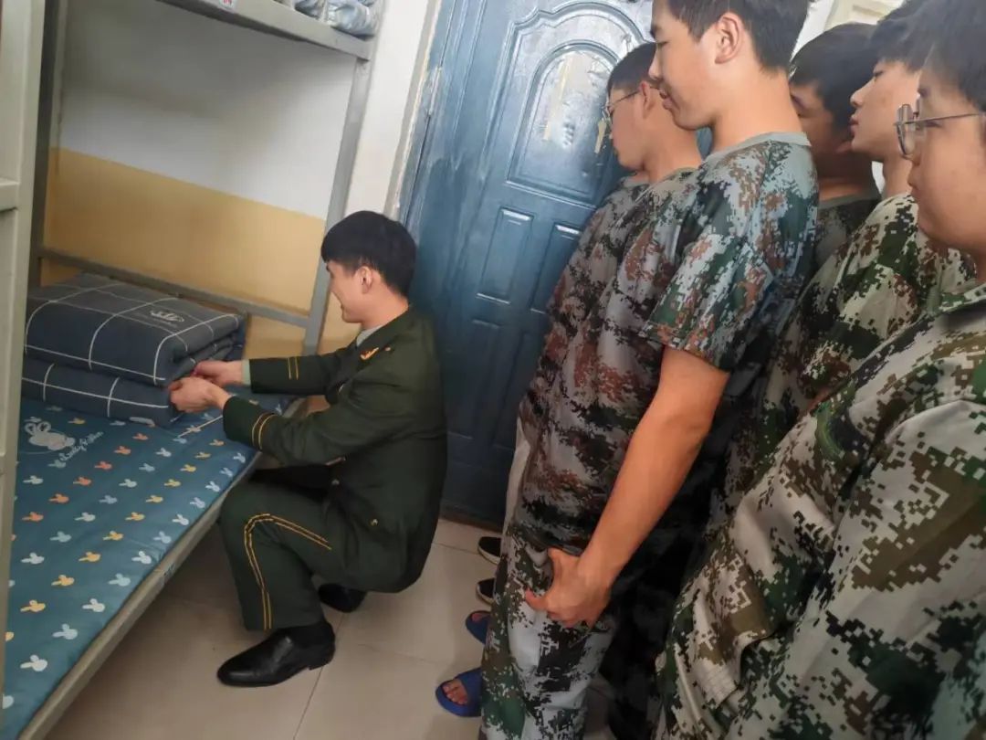 隨后,退役士兵們分組對(duì)新生進(jìn)行指導(dǎo)。他們耐心地講解疊被子的要領(lǐng),手把手地教新生如何將被子疊得方正整齊。新生們認(rèn)真聆聽,積極嘗試,雖然一開始有些手忙腳亂,但在退役士兵們的耐心指導(dǎo)下,逐漸掌握了技巧。