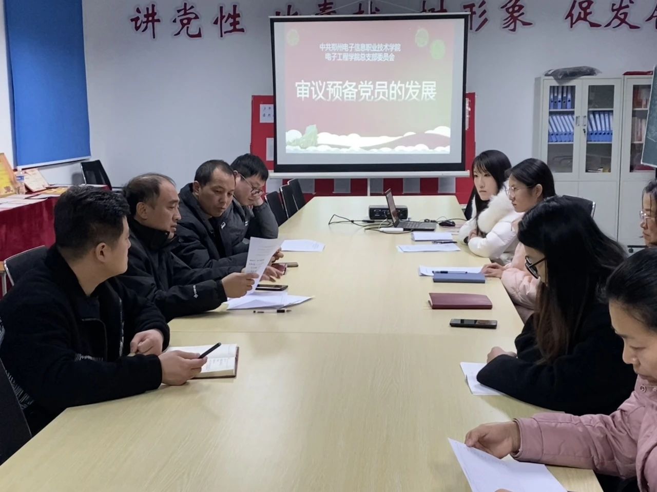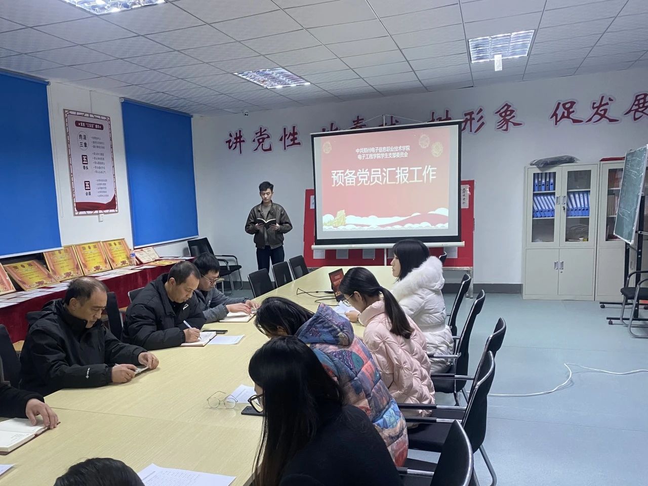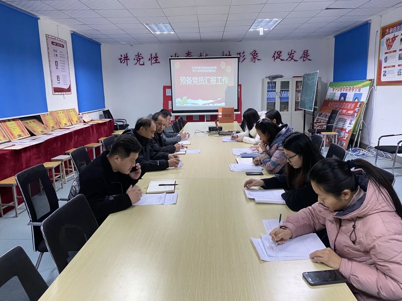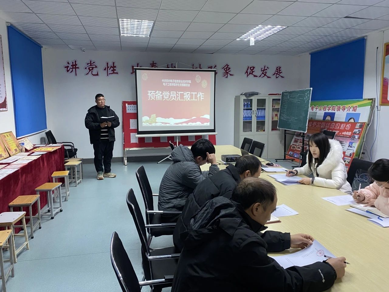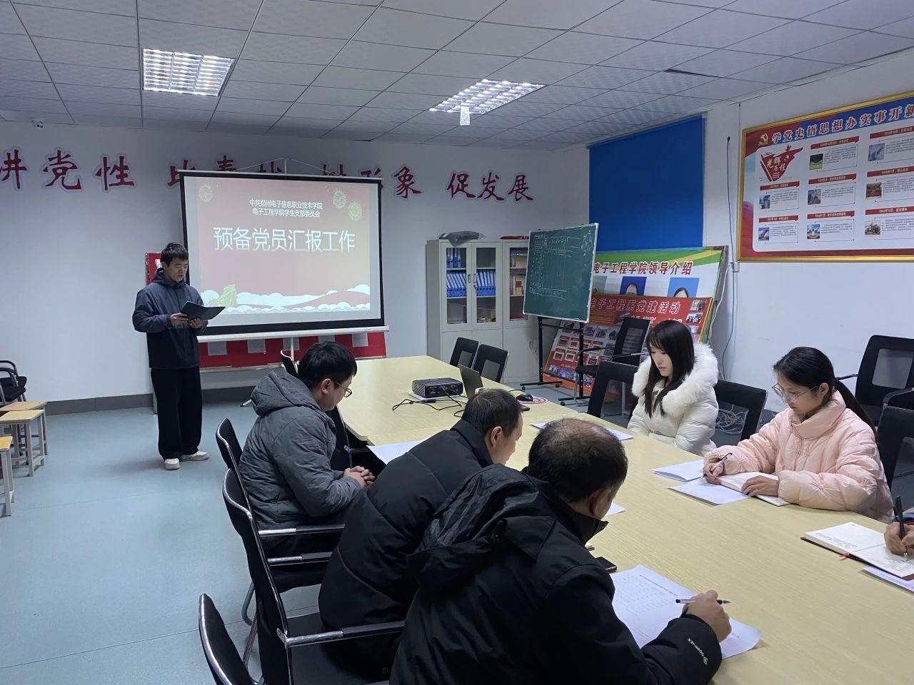 2024年12月5日電子工程學院在綜合辦公樓606黨員辦公室召開學生黨支部預備黨員轉正大會。本次會議討論關于中共預備黨員王成玉等8名同志轉為中共正式黨員的問題。本次會議由學生黨支部書記李玲玲同志主持,黨總支書記王正偉同志出席,陳新穎同志、李冰乳同志、宋黎明同志、吳征銘同志、辛國偉同志、周芳同志、劉亞菲同志以及8名預備黨員參加會議。