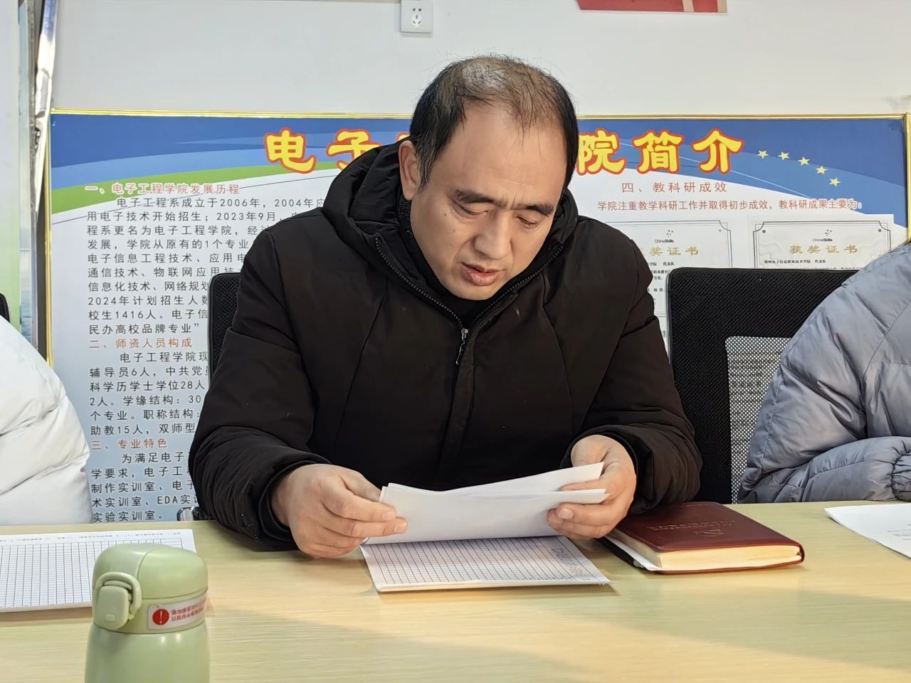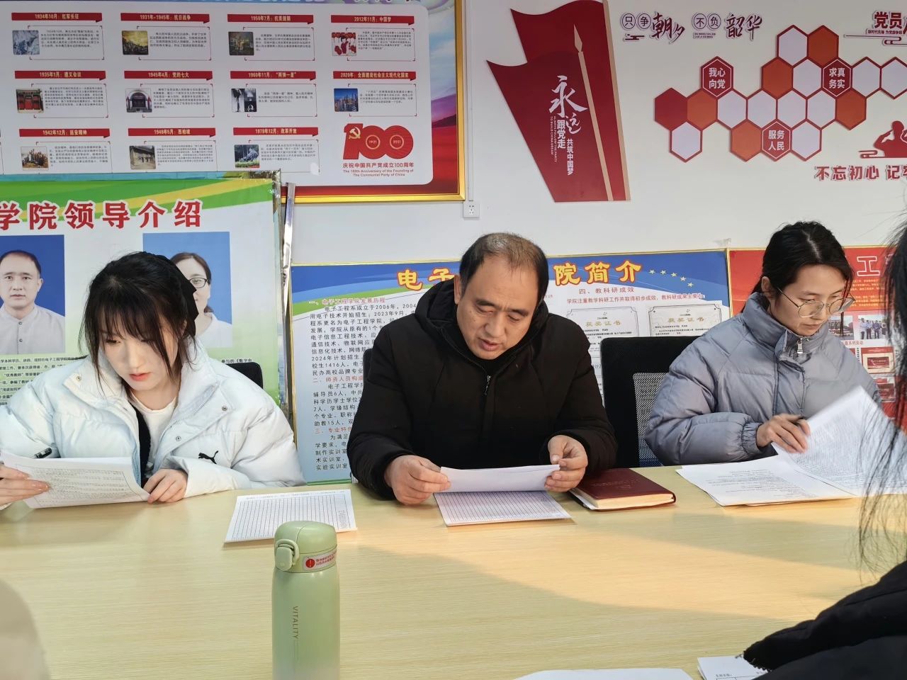 2024年12月24日下午15:30,電子工程學院在綜合辦公室606成功舉辦了以“深入開展黨員批評與自我批評,促進黨員自我提升與黨組織建設(shè)”為主題的組織生活會。電子工程學院全體黨員及預備黨員教師參加了此次會議。