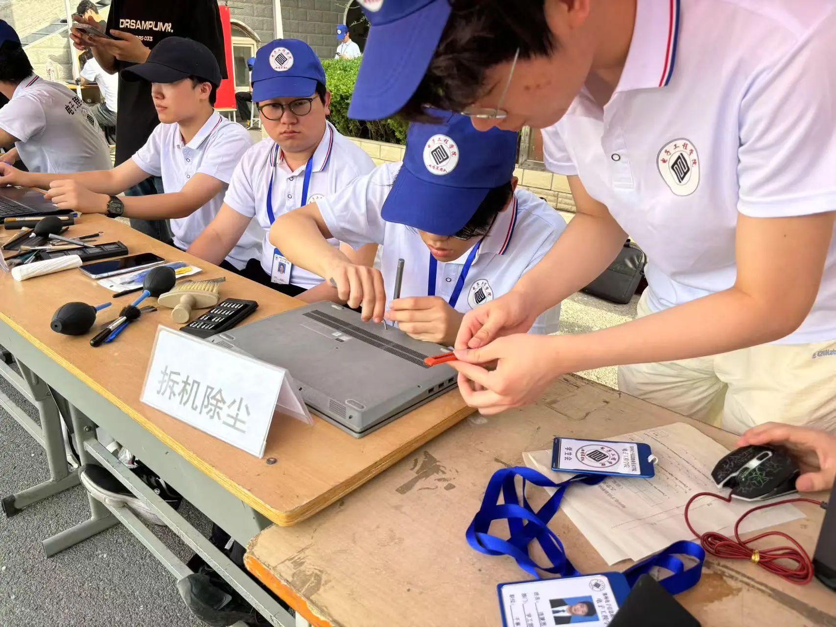 為進(jìn)一步探索“黨建+”融合發(fā)展的實(shí)踐路徑,賦能“一院一品”特色品牌建設(shè),電子工程學(xué)院以黨建引領(lǐng)專(zhuān)業(yè)建設(shè),于2025年4月17日辦公樓大前如期開(kāi)展“e網(wǎng)情深、e心向黨"義修電腦,并且此次開(kāi)展拍攝證件照的同時(shí)還舉行了ps修圖制作小比賽,在突顯專(zhuān)業(yè)特色,聚焦學(xué)生需求的同時(shí)也幫助師生解決電腦問(wèn)題。