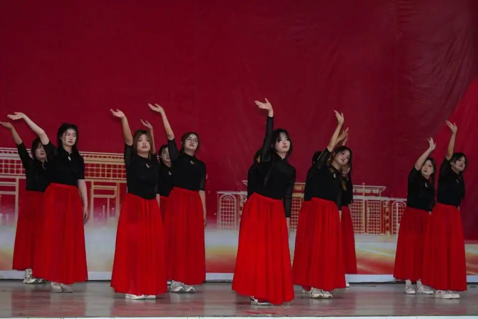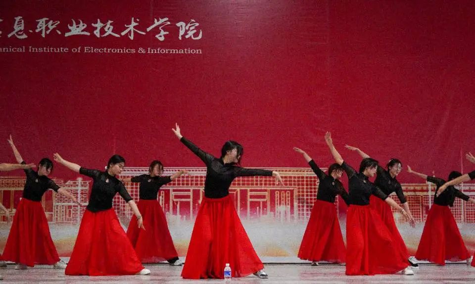 電子工程學(xué)院的《如愿》作為第三個(gè)出場的,瞬間吸引了全場觀眾的目光。舞蹈以悠揚(yáng)的音樂為開篇,舞者們身著簡潔而富有年代感的服裝,動作輕柔舒緩,仿佛將觀眾帶入了那個(gè)充滿希望與憧憬的年代。隨著音樂節(jié)奏的加快,舞者們的動作也變得剛勁有力,她們用挺拔的身姿、堅(jiān)定的眼神,展現(xiàn)了一代又一代中國人為了實(shí)現(xiàn)國家富強(qiáng)、民族復(fù)興而不懈奮斗的精神風(fēng)貌。在舞蹈的高潮部分,舞者們手牽手圍成一個(gè)圈,象征著團(tuán)結(jié)一心的力量,他們跳躍、旋轉(zhuǎn),將現(xiàn)場氣氛推向了頂點(diǎn)。