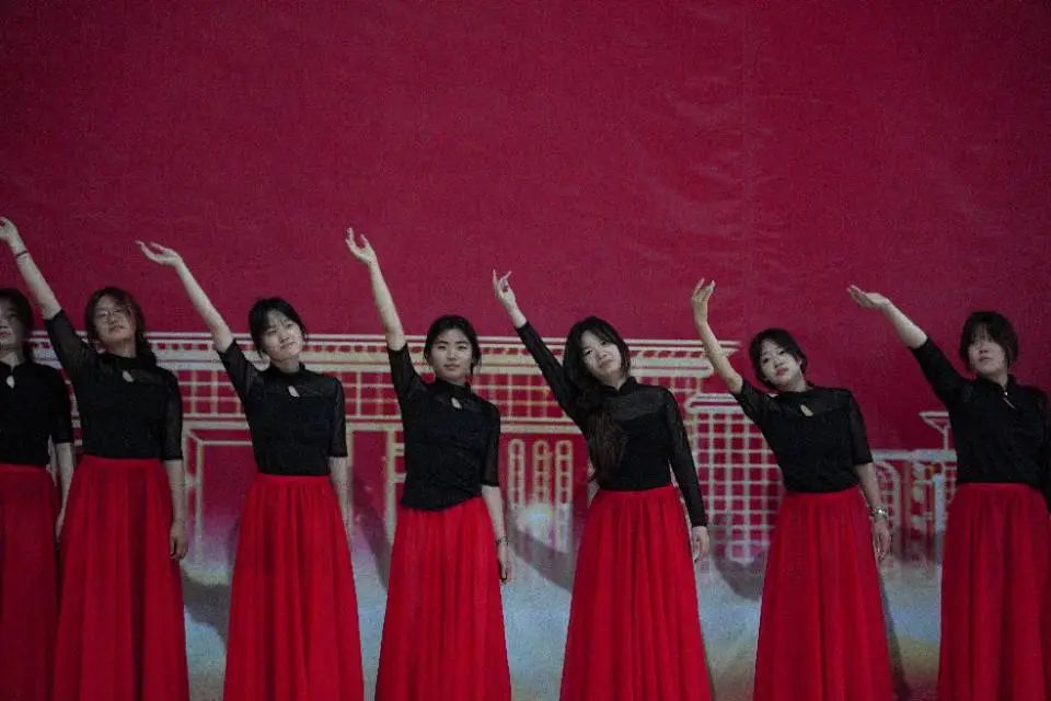 比賽現(xiàn)場,電子工程學(xué)院的同學(xué)們身著精心準(zhǔn)備的服裝,以飽滿的熱情、精湛的技藝和深刻的情感投入,將舞蹈中蘊(yùn)含的紅色精神展現(xiàn)得淋漓盡致。從動作編排到表情管理,從節(jié)奏把控到情感傳遞,每一個(gè)細(xì)節(jié)都處理得恰到好處,她們用靈動的舞姿,將那段波瀾壯闊的歷史生動地展現(xiàn)在觀眾眼前。從開場時(shí)的壓抑與掙扎,到中間的奮起反抗,再到最后的勝利歡呼,舞者們用舞蹈的起承轉(zhuǎn)合,帶領(lǐng)觀眾走進(jìn)了那個(gè)熱血沸騰的年代,深刻感受到了革命先輩們?yōu)榱死硐牒托叛?,不惜拋頭顱、灑熱血的偉大精神。