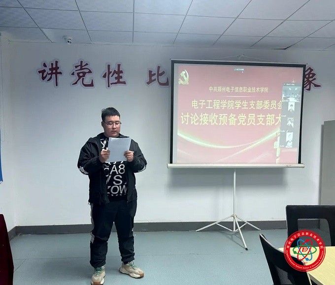 2023年12月5日下午,我院在辦公樓606會議室召開以“電子工程學(xué)院學(xué)生黨支部接收預(yù)備黨員大會”為主題會議。黨總支書記張志愿、學(xué)生黨支部書記李玲玲同志以及其余黨員同志、4名發(fā)展對象現(xiàn)場參會、3名發(fā)展對象通過第二會場線上視頻參加會議。