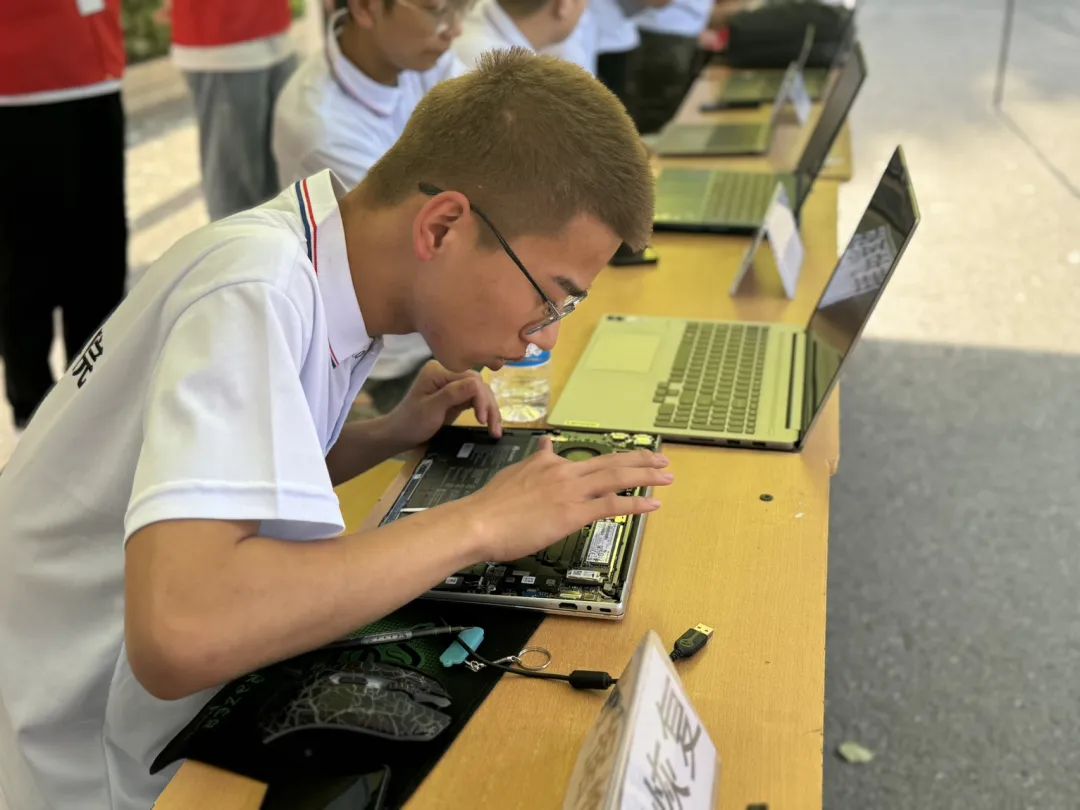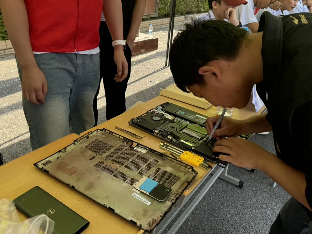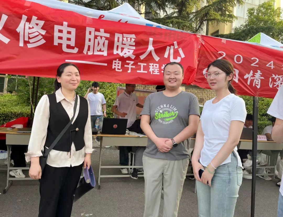 電子工程學院堅持以黨建引領專業(yè)建設,積極探索“黨建+專業(yè)”融合發(fā)展的實踐路徑,結合2024年河南省職業(yè)教育活動周活動,電子工程學院精心組織、周密布置,2024年5月16日電子工程學院開展“e網(wǎng)情深、e心向黨"義維修電腦系列活動,突顯專業(yè)特色,聚焦學生需求,幫助師生解決電腦問題。此次活動,不僅是一次技術知識的普及與推廣,更是一次創(chuàng)新探索的生動實踐,通過實景實物、節(jié)目表演等多種形式全面展示宣傳我院特色與亮點,強化學生專業(yè)能力,扎實推動勞動教育,共筑紅色實踐基地。