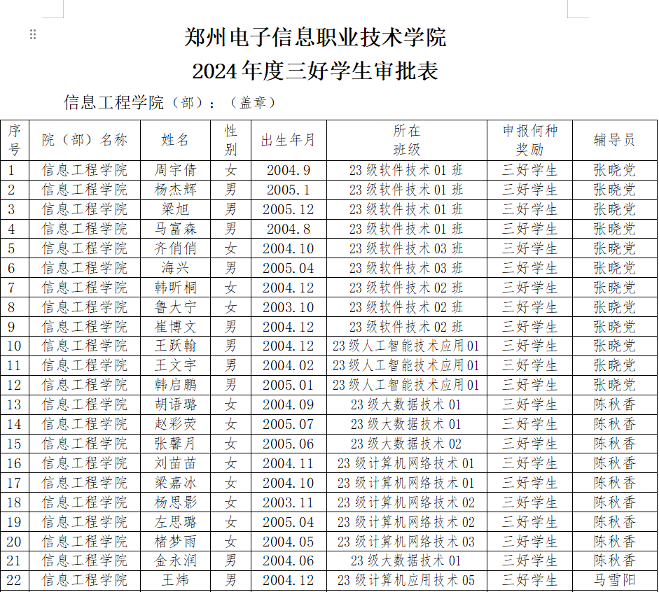 信息工程學院 | 2024年度先進班集體、優(yōu)秀學生干部和三好學生評選結果公示