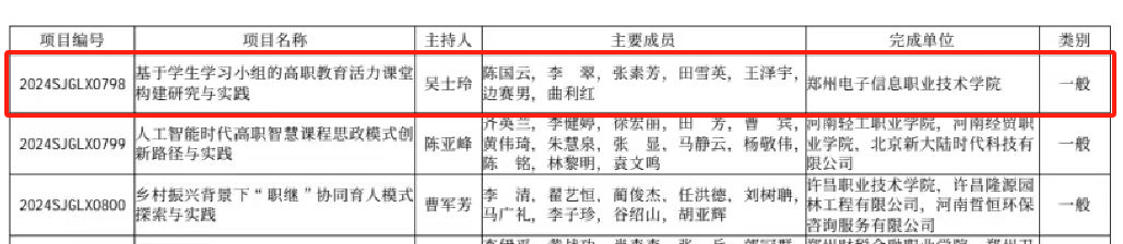 我院黨總支書記吳士玲同志主持的項目“基于學(xué)生學(xué)習(xí)小組的高職教育活力課堂構(gòu)建研究與實踐”獲得2024 年度河南省高等教育教學(xué)改革研究與實踐項目立項。