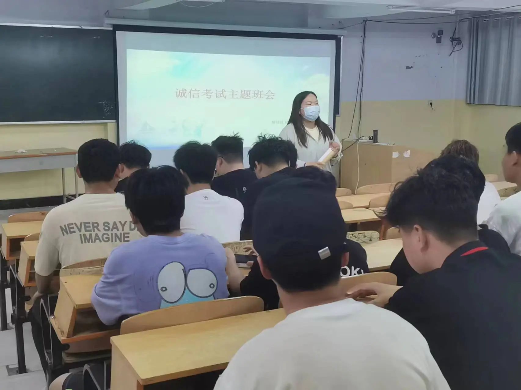 各班通過同學(xué)們分享對考試的認(rèn)知,考試前的準(zhǔn)備,心態(tài)調(diào)整等,引導(dǎo)同學(xué)們在即將到來的考試周要嚴(yán)格遵守考試紀(jì)律,做到誠信應(yīng)考,以誠信為本,用扎實的知識和良好的心態(tài)迎接每一次考試。