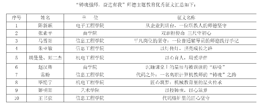 鄭州電子信息職業(yè)技術(shù)學(xué)院 關(guān)于“鑄魂強(qiáng)師,奮進(jìn)有我”師德教育主題征文和師德師風(fēng)建設(shè)優(yōu)秀案例評選結(jié)果的公示